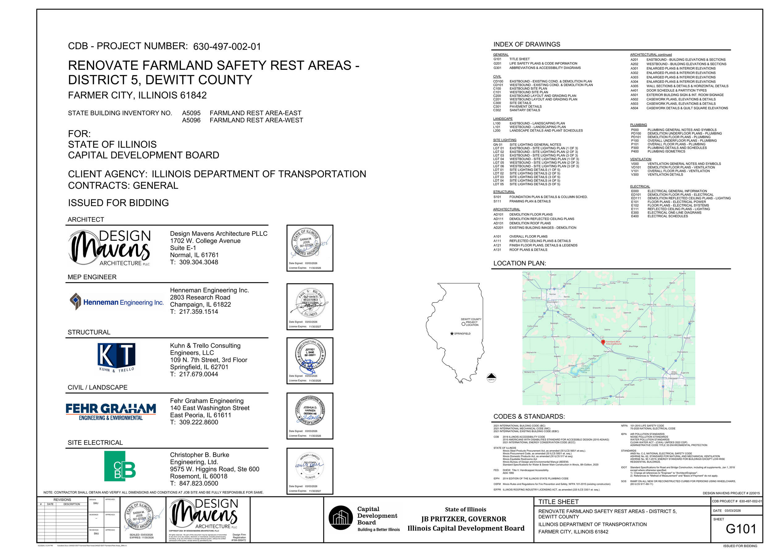 Interior building remodel of toilet rooms, vestibules, lobby, vending and staff areas to reconfigure spaces including replacement of walls, doors, ceilings, finishes, plumbing, electrical and ventilation systems. Exterior improvements include new pedestrian site lighting, new landscaping, sidewalks, playground, and pavement.